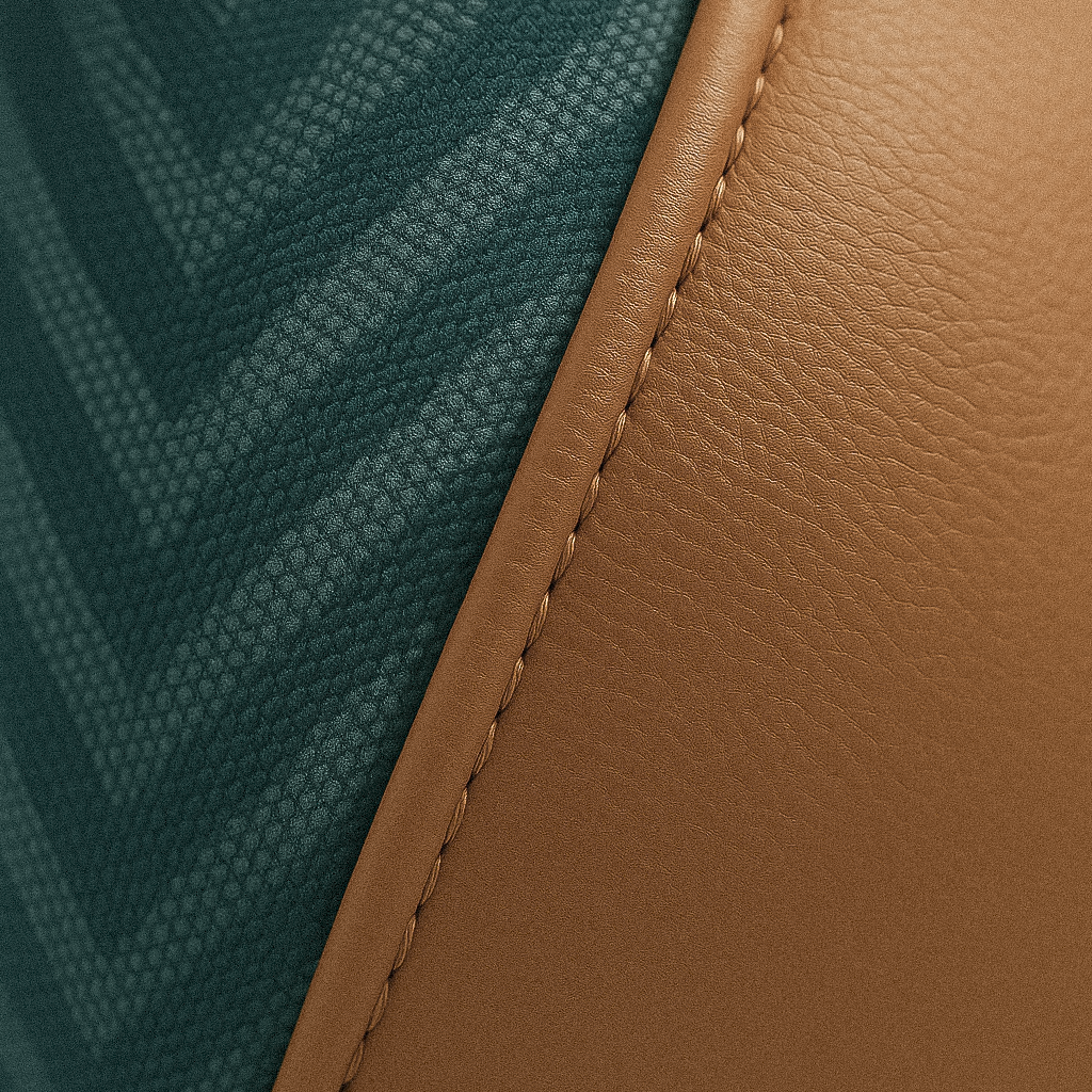 Tactile, envel oping fit; geometry with expressive radii. The ARGER trademark monogram is neatly integrated into the backrest.