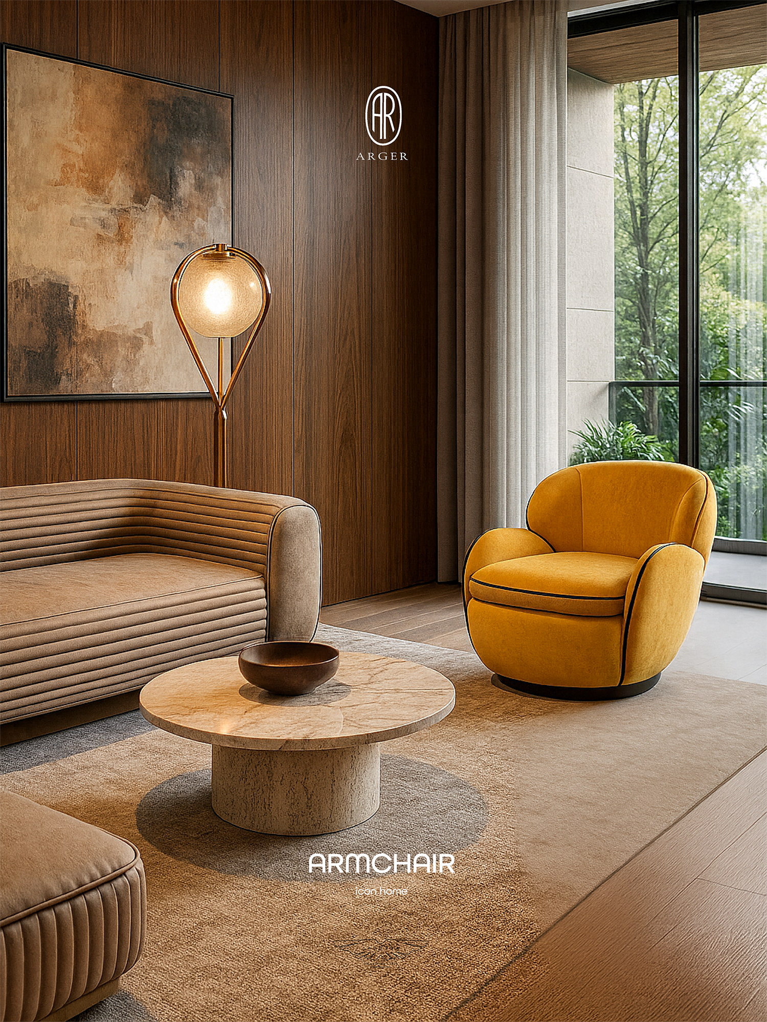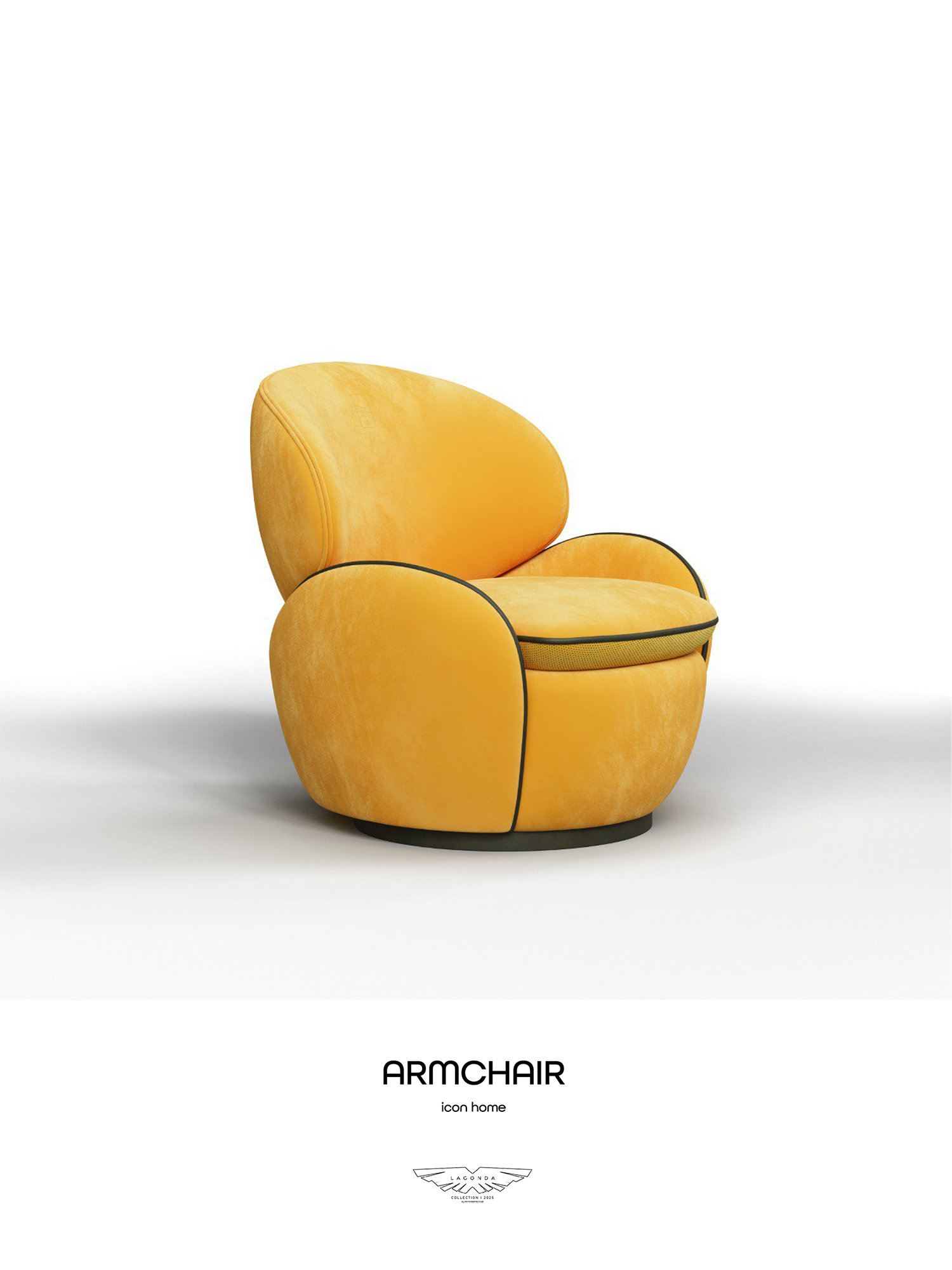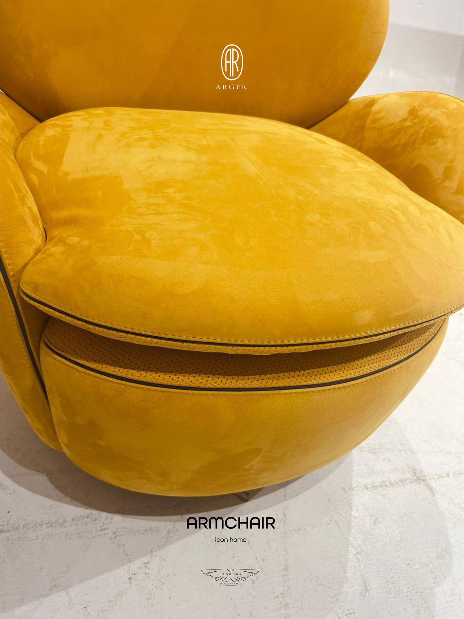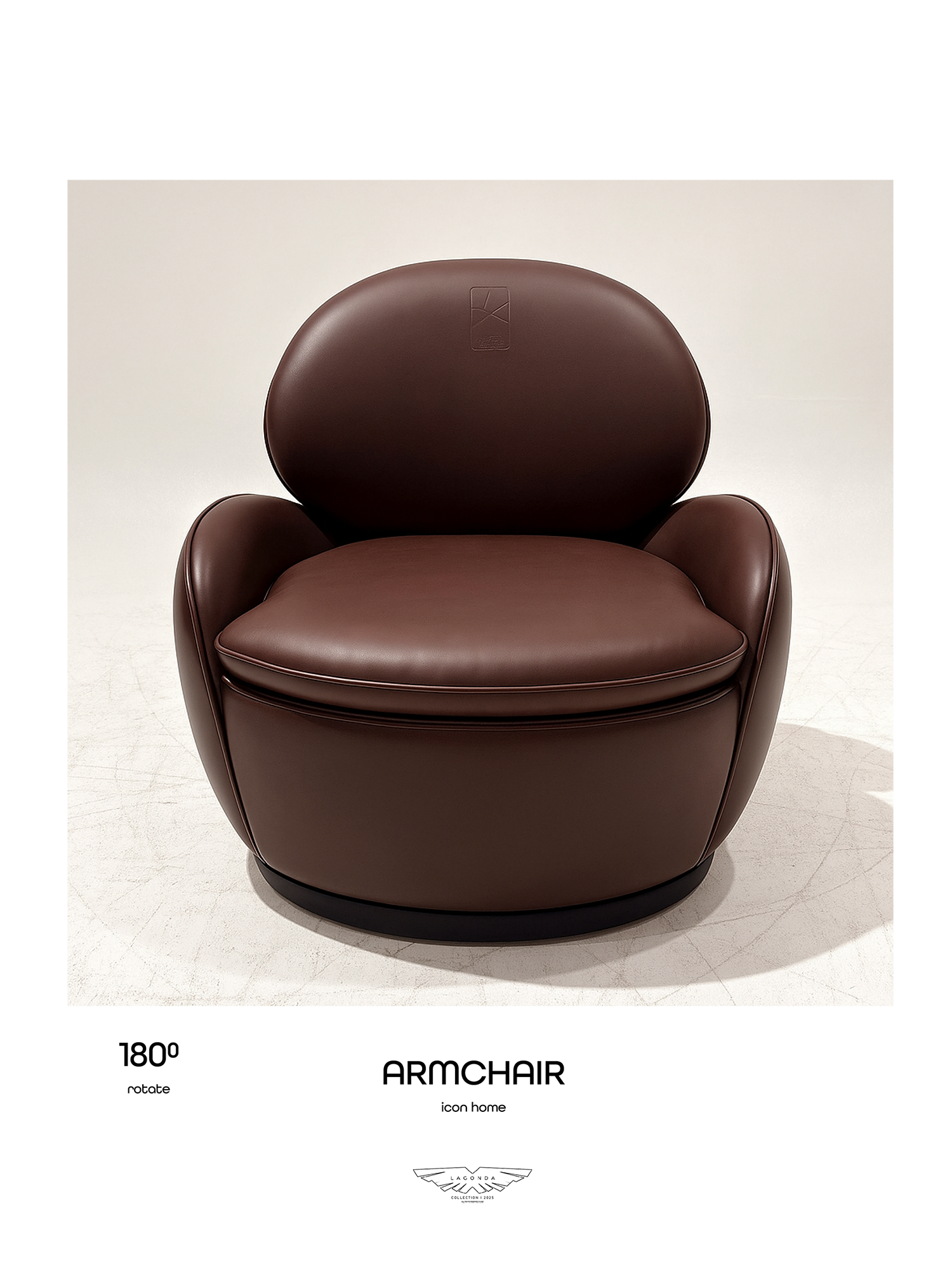 Plush, sink-in comfort at first contact; balanced support for long reads or conversation. The rounded arms hug the body; the compact footprint makes LAGONDA ideal for living rooms, suites, and lounges. -