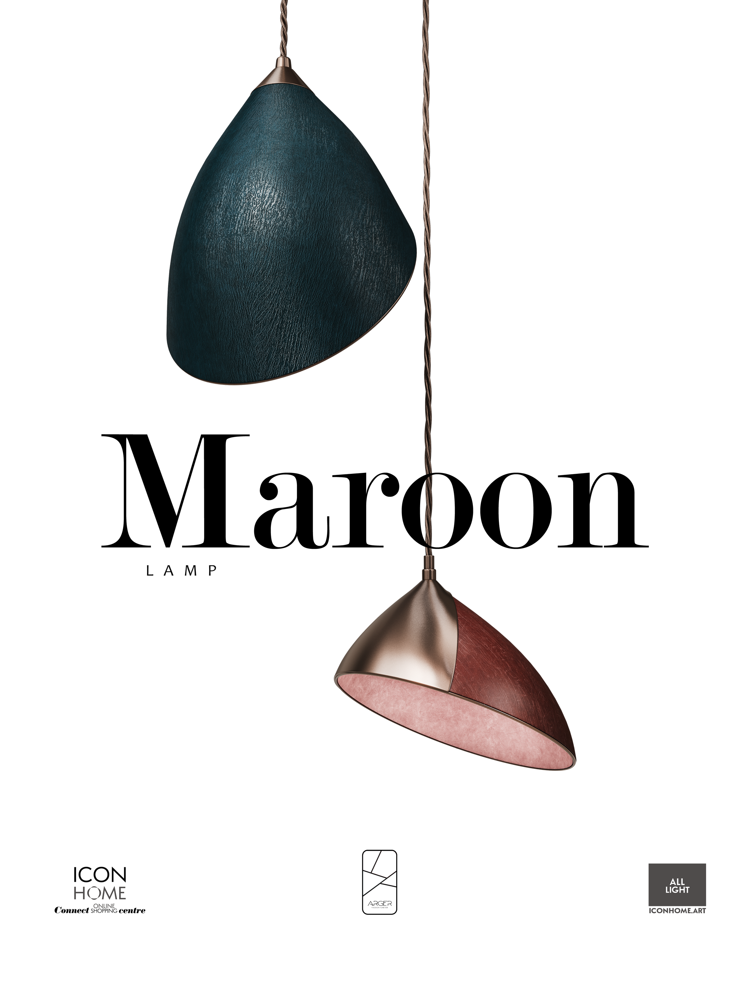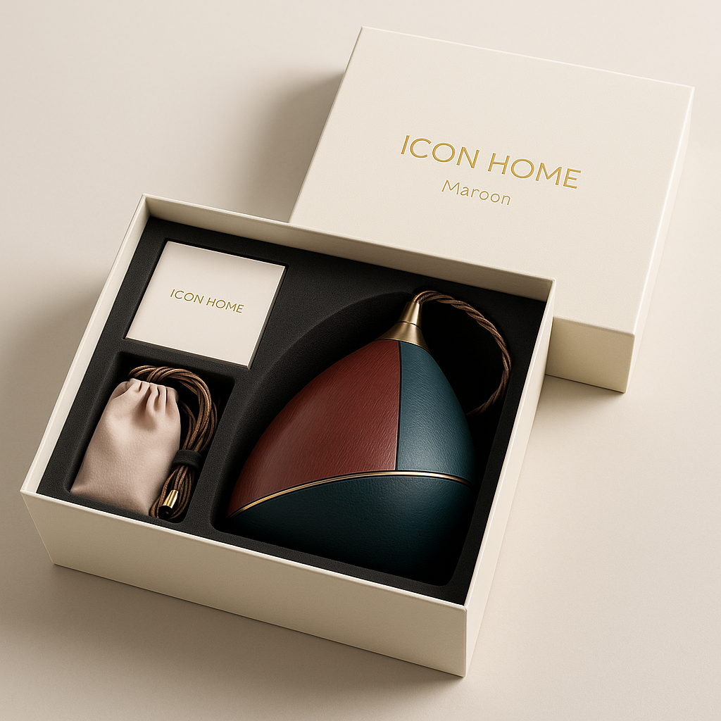 Warm champagne-bronze on the edge and on the sleeve adds a soft gloss, and a twisted fabric cable completes the look. Maroon works as a solo accent or in compositions (line/cluster), creating chamber light and a premium atmosphere.