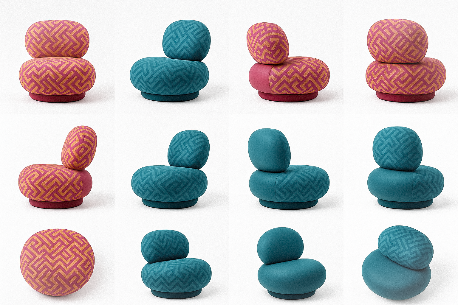 A sculptural statement cushion created to pair with the OXYGEN lounge chair. Hand-cut, layered petals in Nappa leather bloom across the face, while a subtle ARGER perforation pattern allows gentle air release and keeps the cushion comfortably breathable. The result is refined couture upholstery with a soft, tactile glow.
