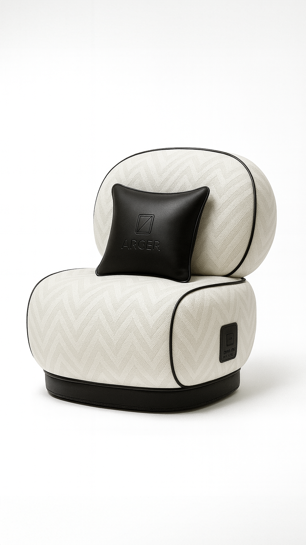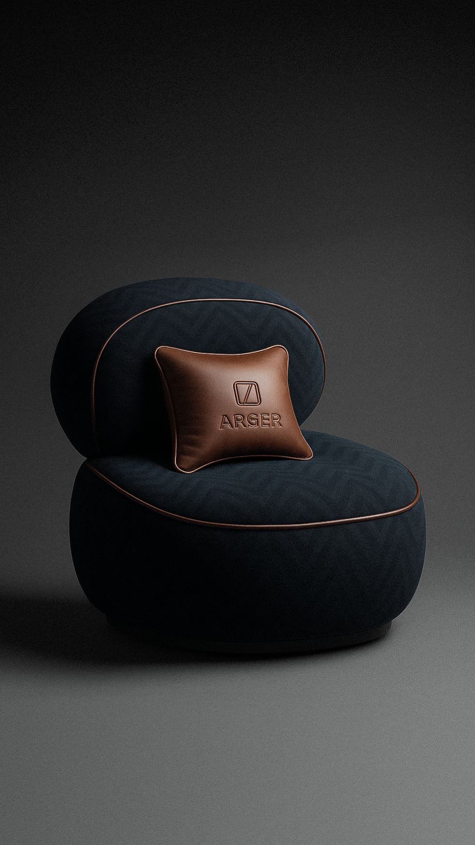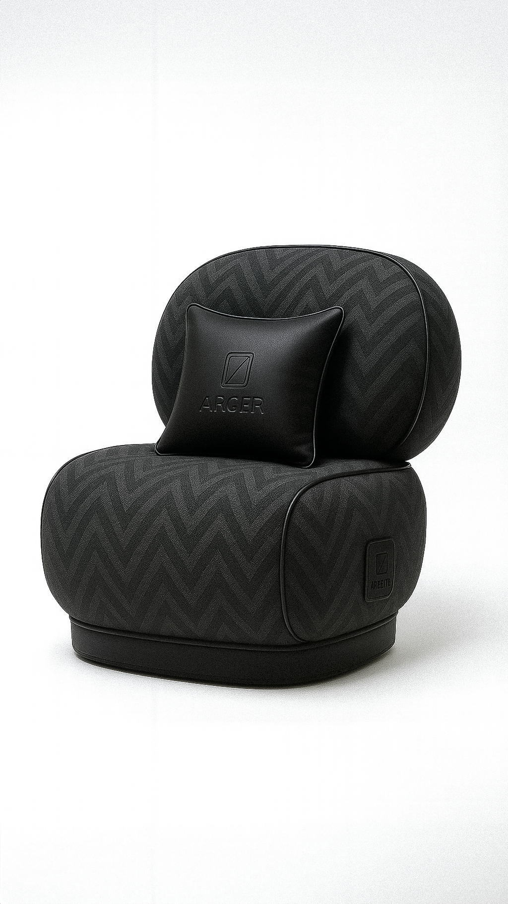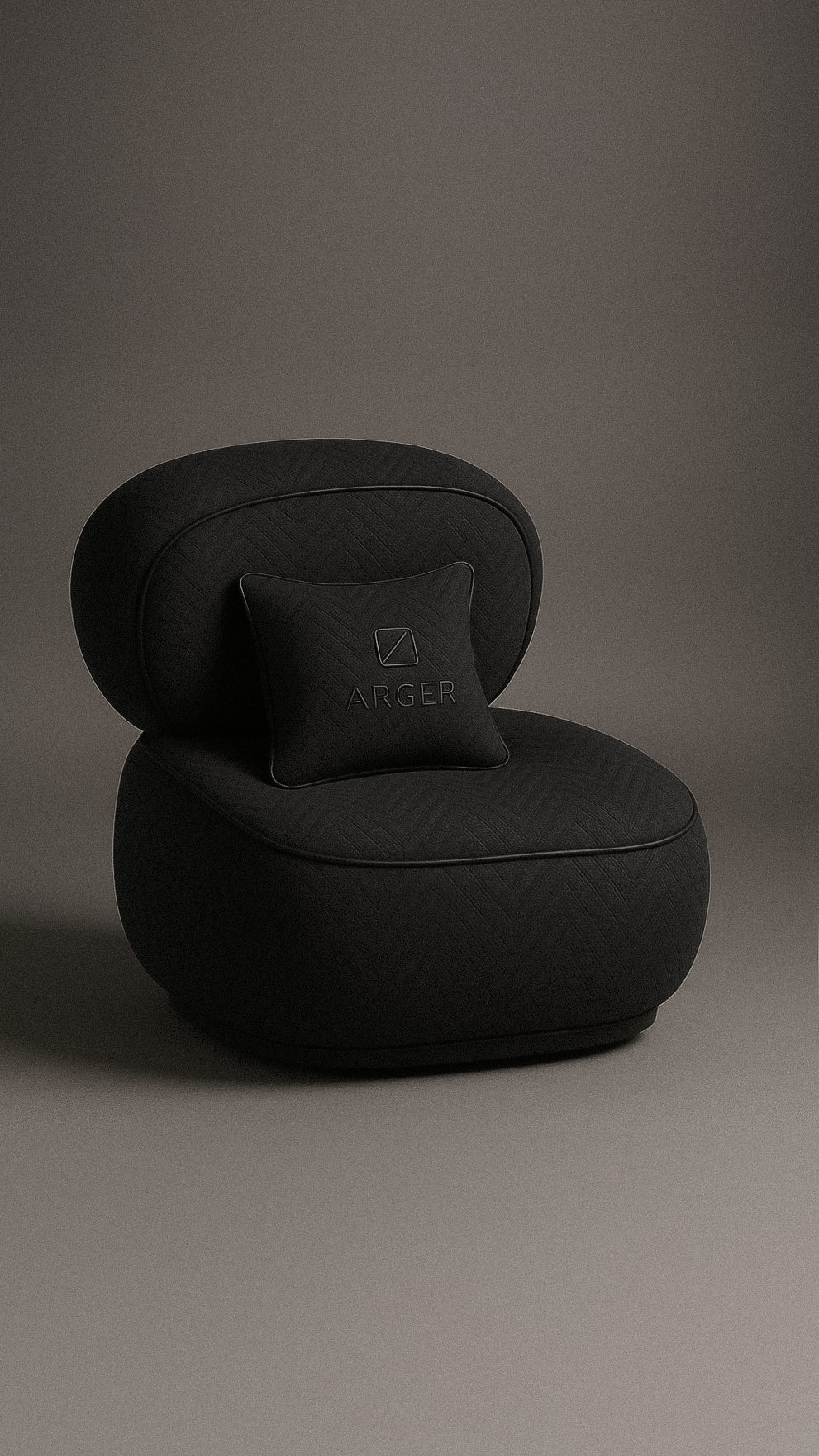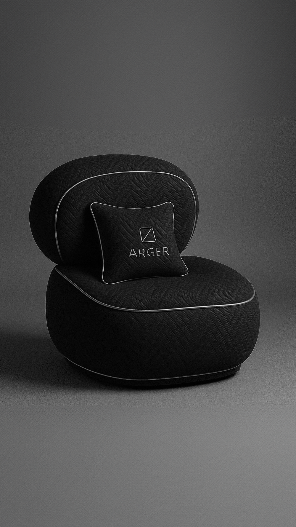 Tactile, envel oping fit; geometry with expressive radii. The ARGER trademark monogram is neatly integrated into the backrest.