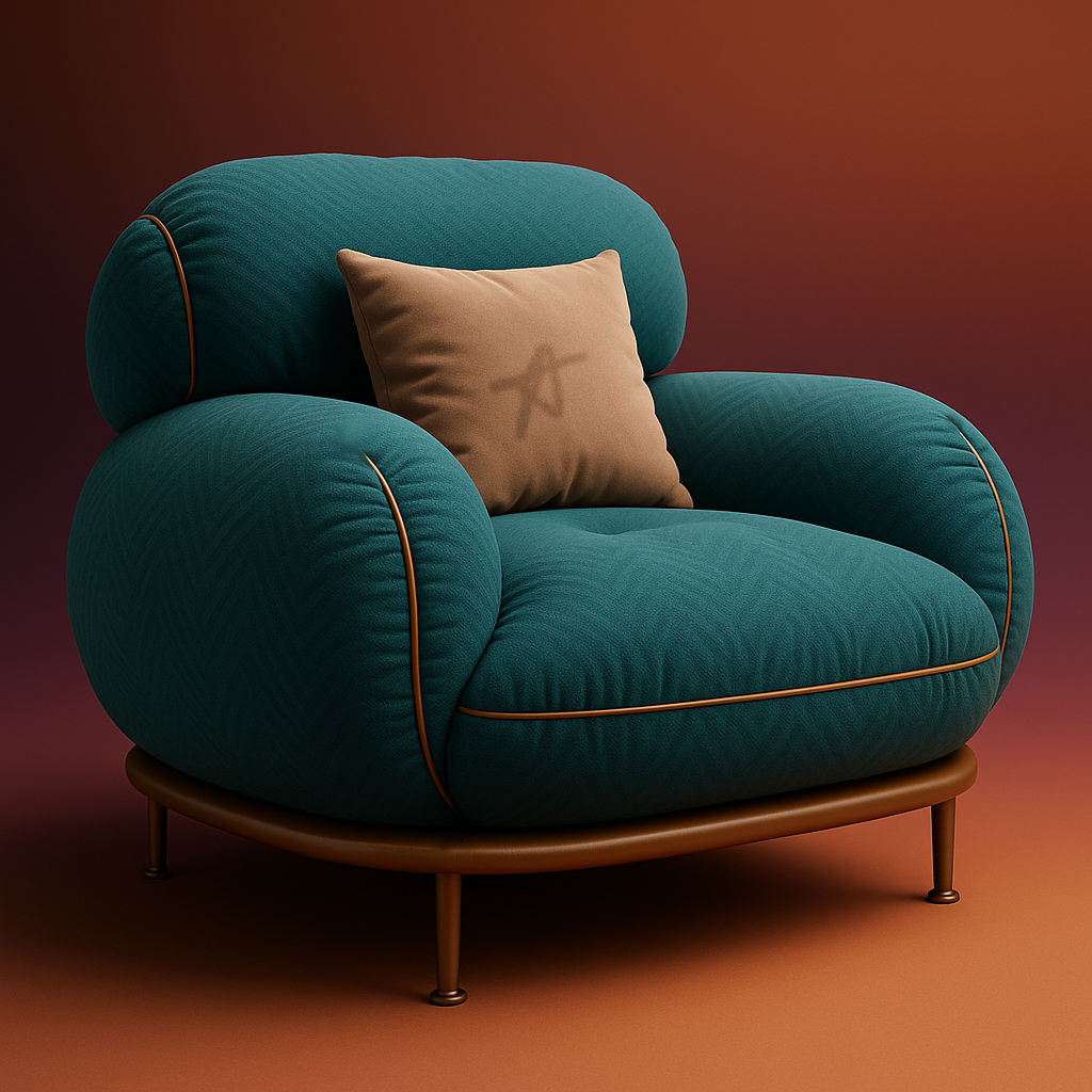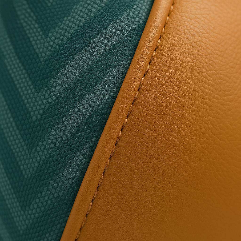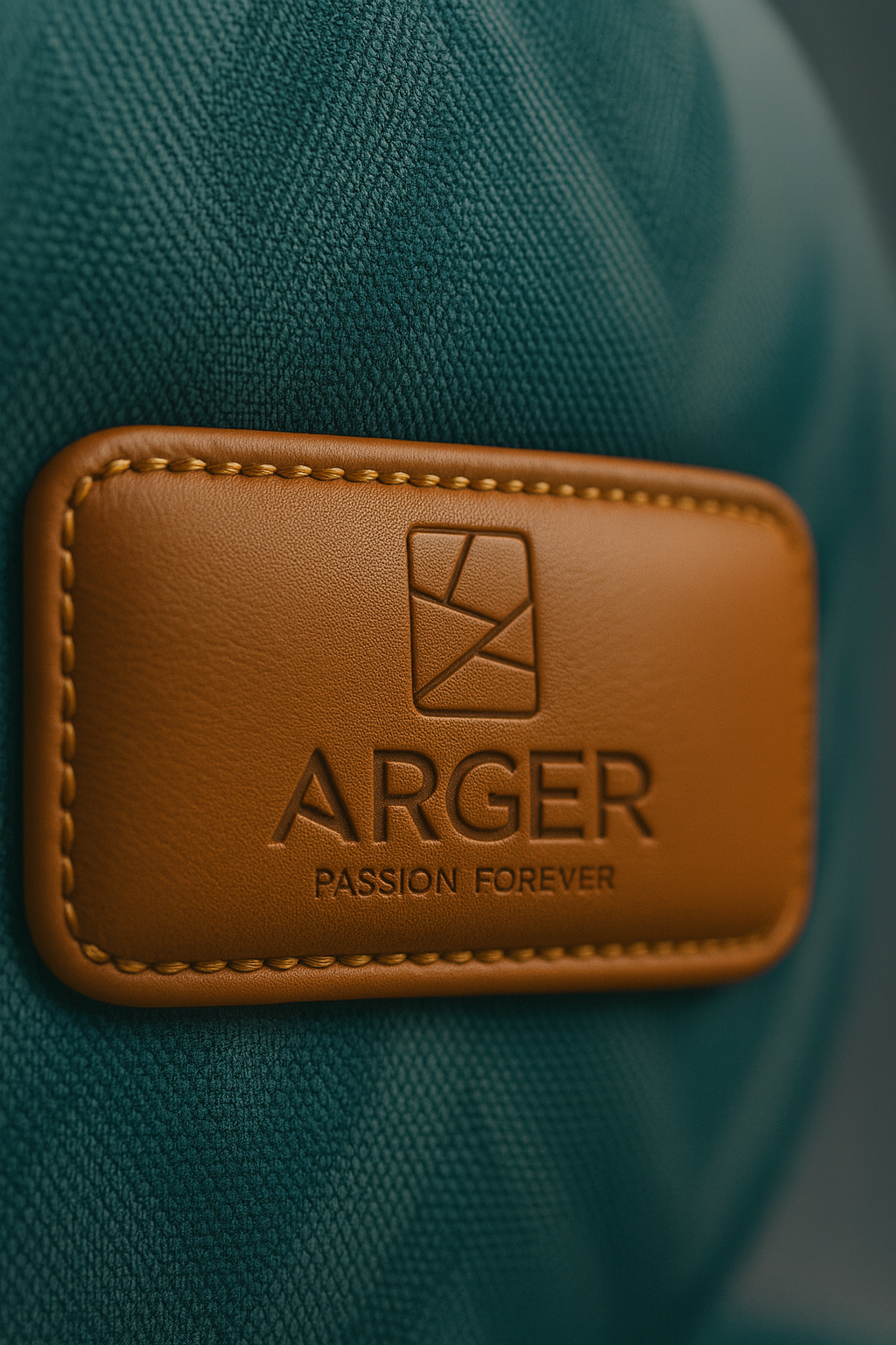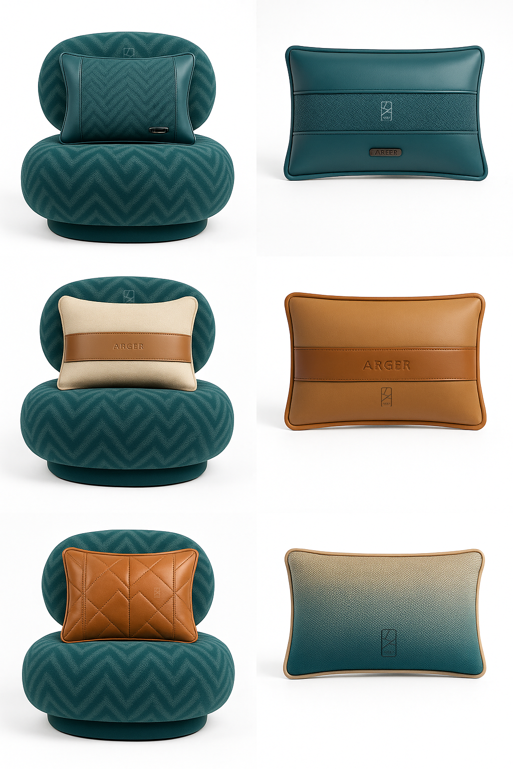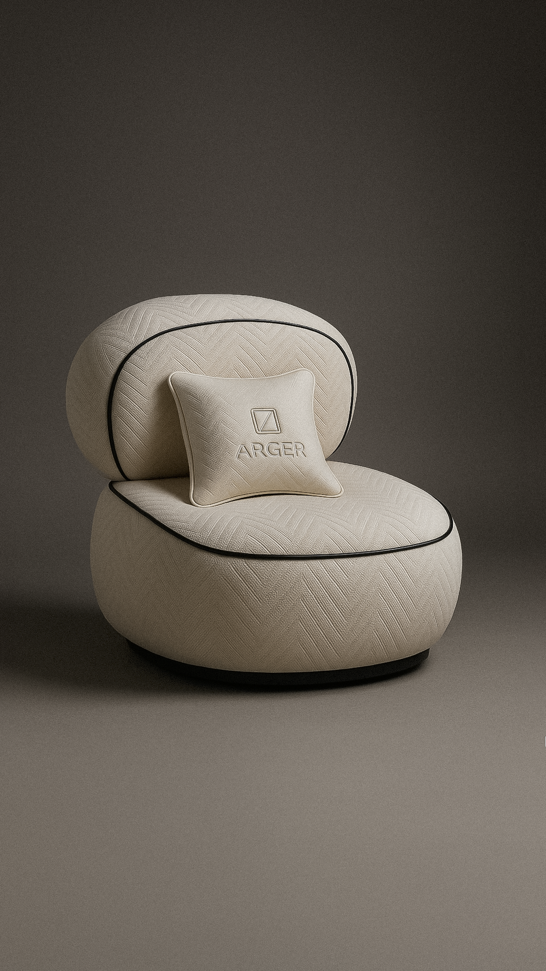 Tactile, envel oping fit; geometry with expressive radii. The ARGER trademark monogram is neatly integrated into the backrest.